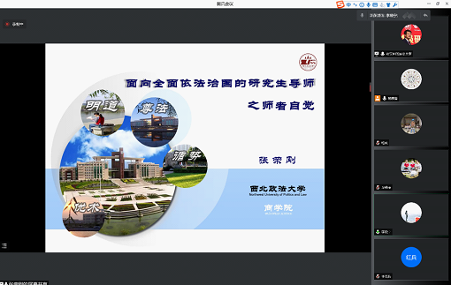 会议开始,张荣刚副校长结合十九届六中全会精神,做了“面向全面依法治国的研究生导师之师者自觉”专题报告,从尊法与御德、应做大先生、师者之自觉以及学者之进路四个方面展开讲述,并与大家分享了《中共中央关于党的百年奋斗重大成就和历史经验的决议》的学习感悟,以及对公共管理学科的发展和建设工作做了总结与部署。