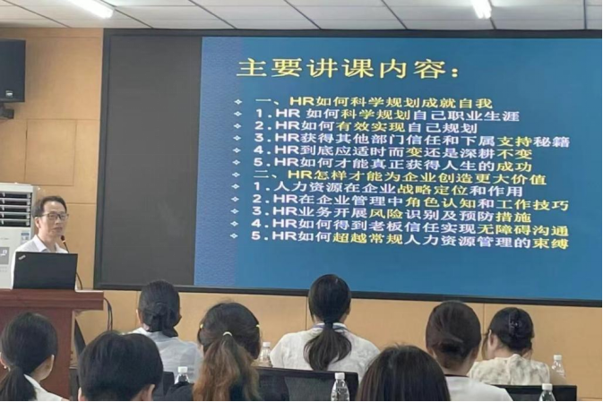 陕西诚邦人力资源有限公司总经理田坤介绍了本次特训营实战课程体系。他表示,本次特训营聚焦我省及西北地区企事业单位人才成长及产业发展需求,精准定位人力资源经理人的管理诉求,重实战、重落地,依托西北政法大学优质教学科研资源和优秀企业人力资源高级管理者多年实战经验,在总结近十年各类职业经理人培训经验基础上,设计了一套理论与实践结合、策略方法与实际案例匹配的经典管理课程,旨在扩展企业学员思想深度、知识广度,搭建交流平台,为学员成长及企业高质量发展赋能。